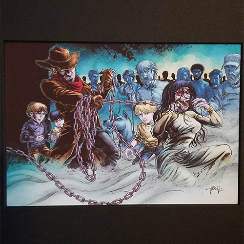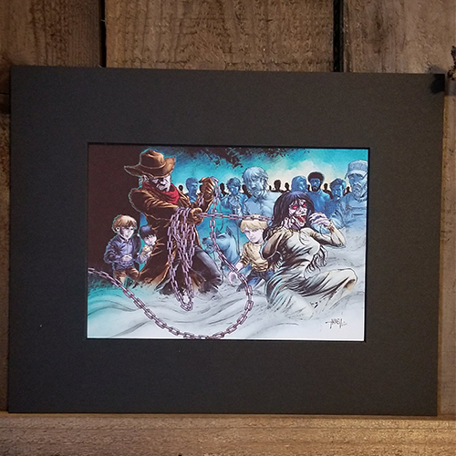 The matte can be signed by Blood & Dust Co-Creator & Writer Michael R. Martin at your request.