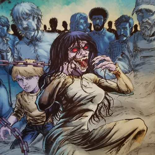 This image is the wraparound Kickstarter cover for Glenny Family Values by horror art superstar Andrew Mangum and colored by Raymund Lee.