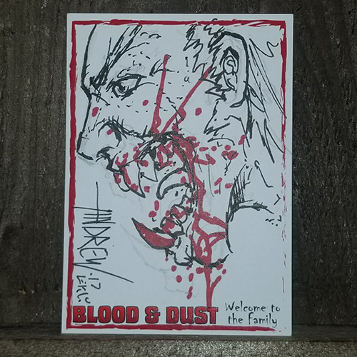 Horror superstar Andrew Mangum did some amazing sketch cards for us and we're excited to offer these original, one of a kind items to you guys! Grab these up before they're gone!